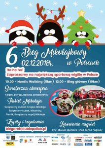 W tym roku Gwiazda Betlejemska nieco szybciej pojawi się na niebie, bo już 2 grudnia br. Po raz 6. biegacze, zawodnicy Nordic Walking, dzieci i kibice, będą mieli okazję wspólnie spędzić niezapomniane chwile podczas Biegu Mikołajkowego w Policach.