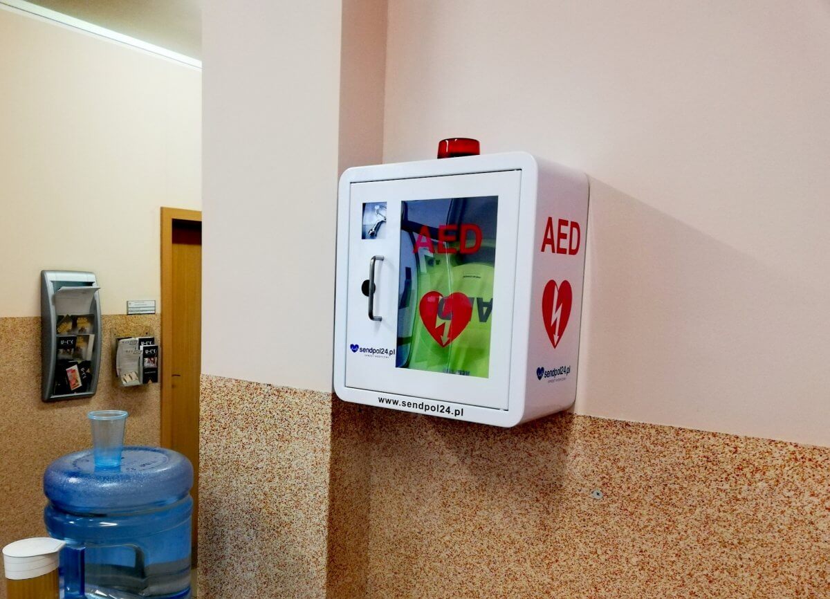 W Starostwie Powiatowym w Policach zamontowano defibrylator. Urządzenie poza standardowym działaniem, przeprowadza na osobie poszkodowanej badanie EKG i podpowiada w jaki sposób pomoc ma być udzielona.