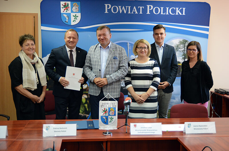 Wydarzenie odbyło się w czwartek 18 lipca w Starostwie Powiatowym w Policach. Umowę pod nazwą: „Budowa bazy sportowej i rekreacyjnej dla dzieci i młodzieży z terenu powiatu polickiego w Specjalnym Ośrodku Szkolno-Wychowawczym im. Kawalerów Orderu Uśmiechu w Tanowie oraz w Zespole Szkół im. Ignacego Łukasiewicza w Policach” podpisali Starosta Policki Andrzej Bednarek, Członek Zarządu Powiatu w Policach Beata Chmielewska i Wicemarszałek Województwa Zachodniopomorskiego Jarosław Rzepa, w obecności Wicestarosty Polickiego Joanny Napiwodzkiej.