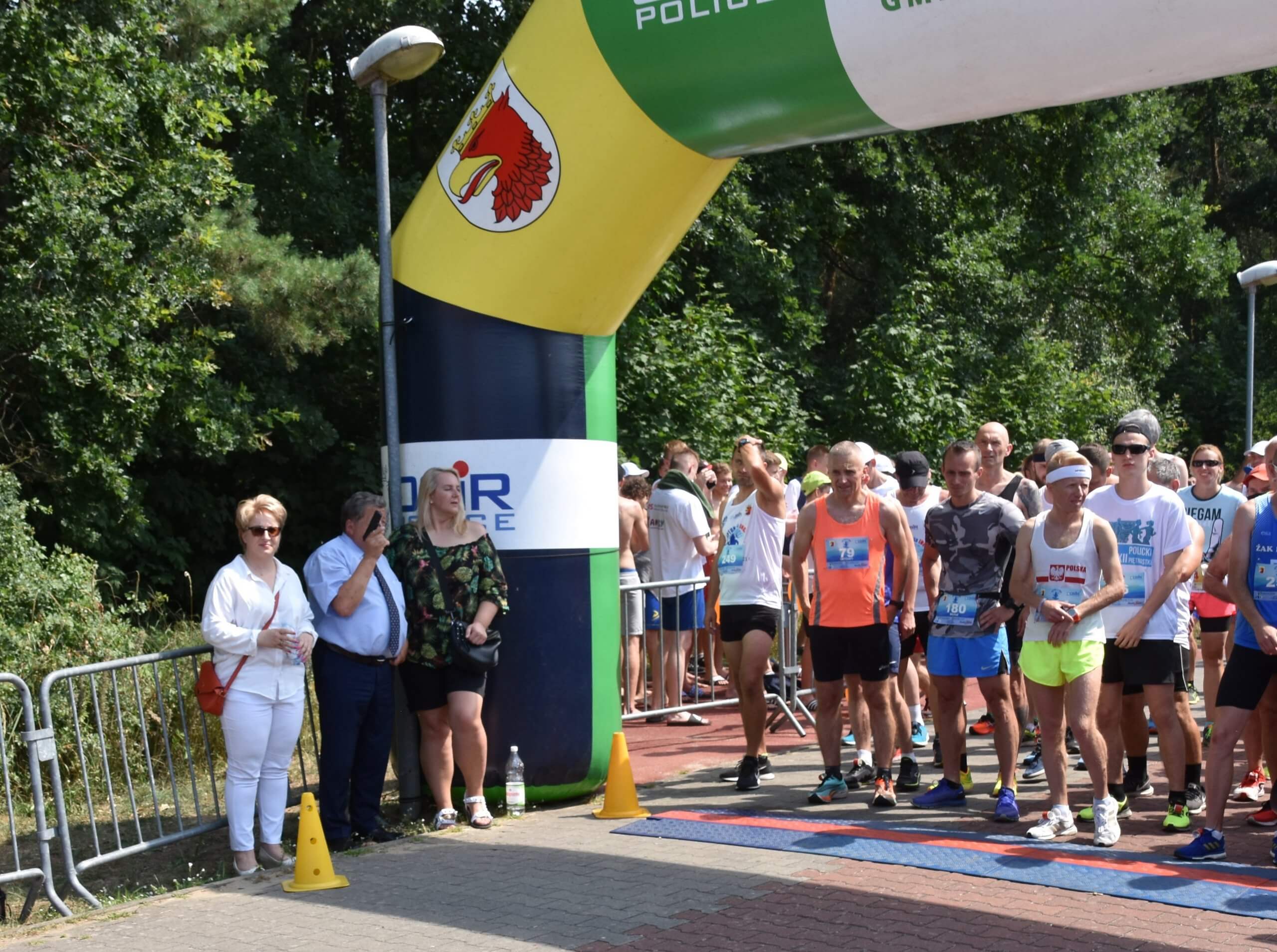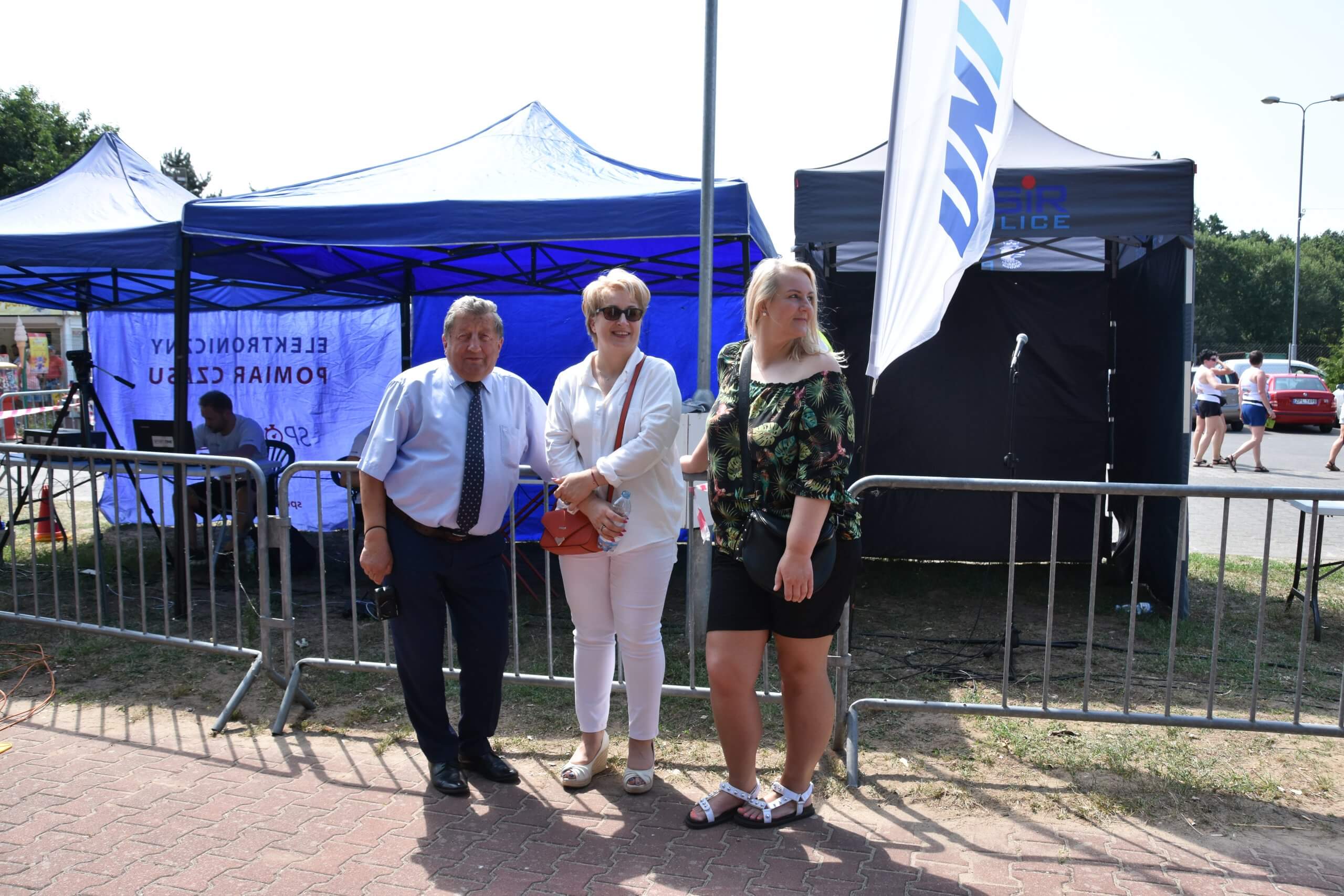 Władysław Diakun Burmistrz Polic, Joanna Napiwodzka Wicestarosta Policki oraz Sołtys Trzebieży Małgorzata Siemianowska witający biegaczy na Starcie Biegu Neptuna