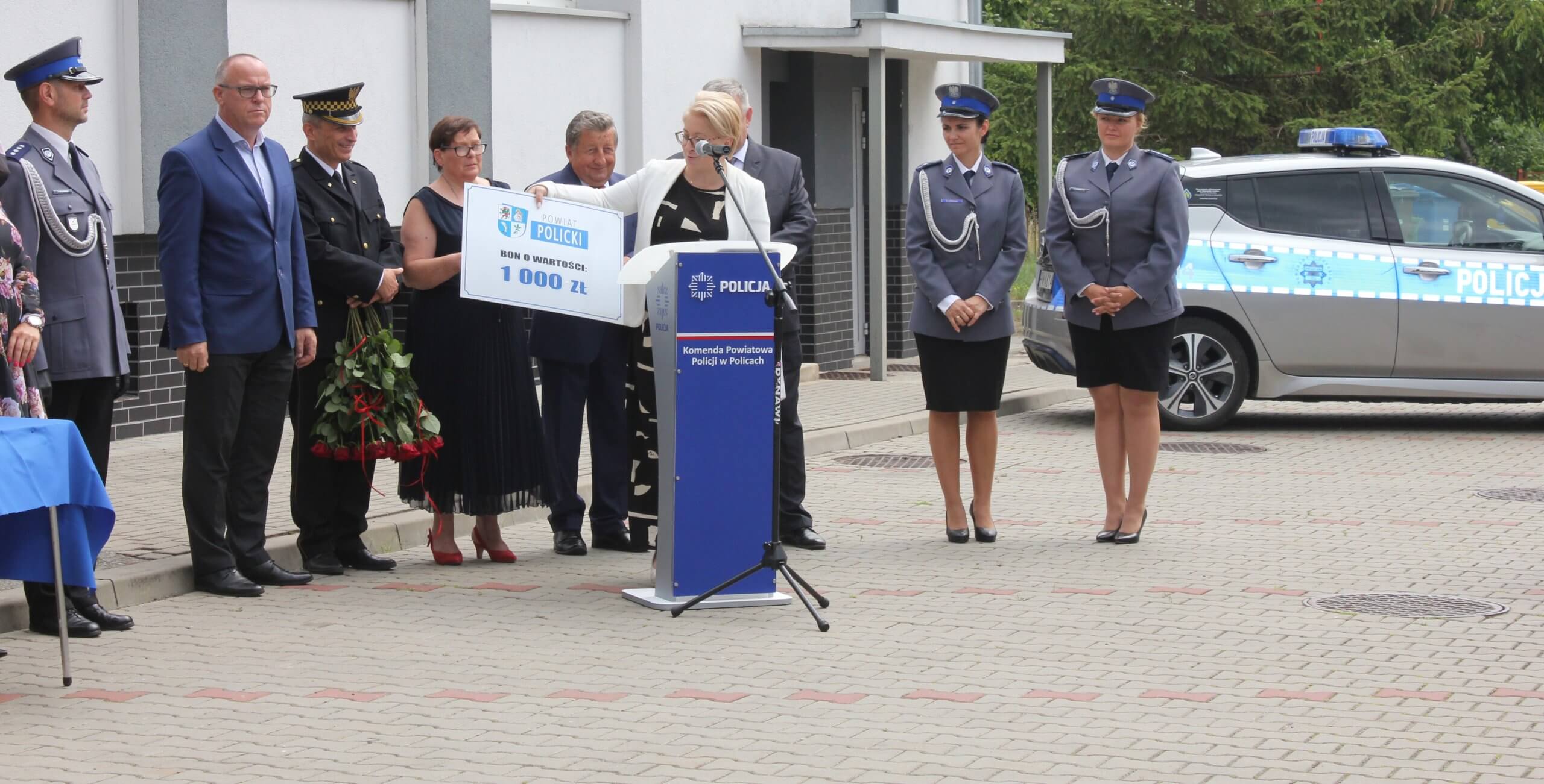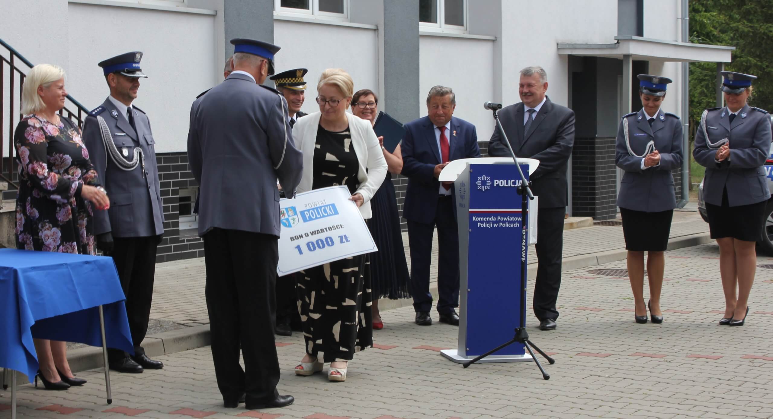 Goście zaproszeni na Obchody Święta Policji wraz z bonem od Powiatu Polickiego