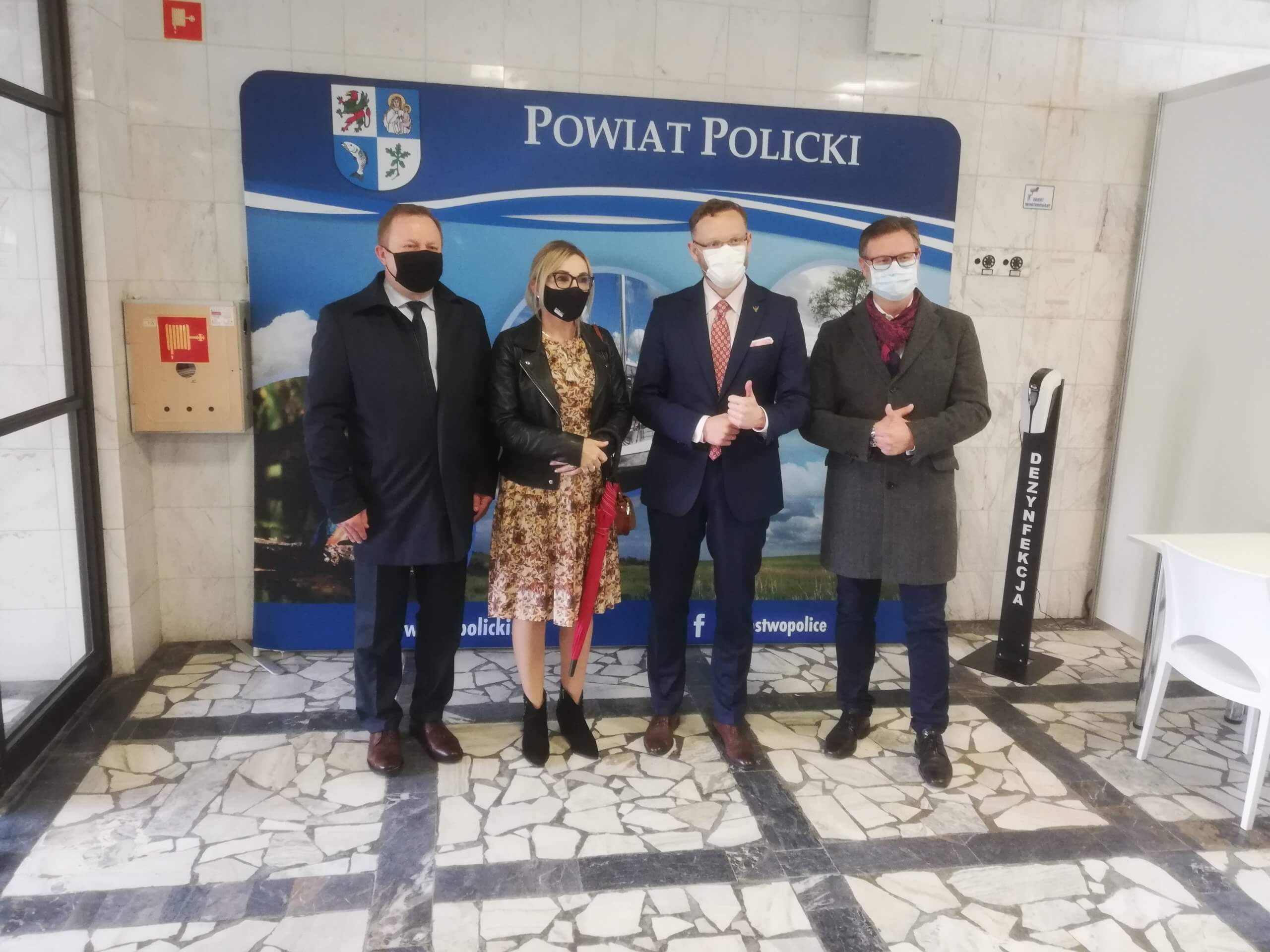 Starosta Policki Andrzej Bednarek, Wojewoda Zachodniopomorski Zbigniew Bogucki i Dyrektor szpitala Konrad Jarosz i Radna Rady Powiatu w Policach Jolanta Toboła