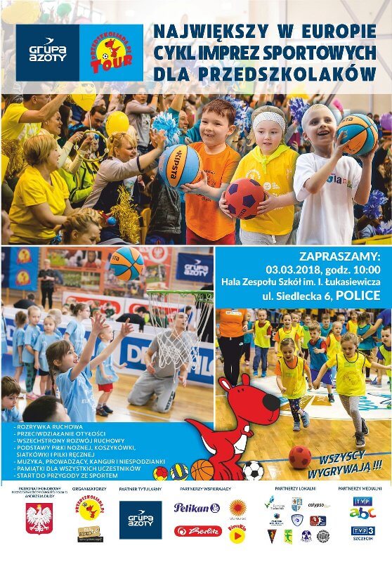 W najbliższą sobotę - 3 marca, w Hali Zespołu Szkół im. Ignacego Łukasiewicza w Policach odbędzie się impreza w ramach Grupa Azoty Przedszkoliada Tour 2018, czyli jednej z sześćdziesięciu imprez w ramach największego w Europie cyklu imprez sportowych dla przedszkolaków. Impreza rozpocznie się o godz. 10.00.