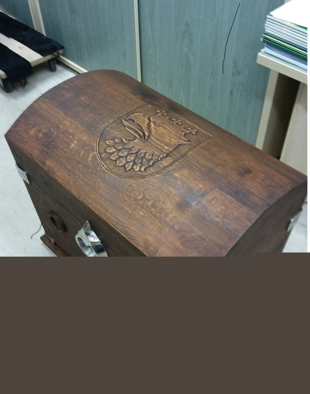 Do kuferka włożono także akt złożenia pamiątek historycznych podpisany przez Przewodniczącego Rady Miejskiej w Policach Grzegorza Ufniarza, opiekuna Galerii Historycznej Polic Jana Maturę i prezesa Stowarzyszenia Miłośników Broni Dawnej "Grajcar" Sławomira Tomanka.