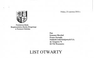 Powiatowa Rada Bezpieczeństwa Ruchu Drogowego w Powiecie Polickim wystosowała List Otwarty do Prezesa Zarządu PLK S.A. Ireneusza Merchela, w sprawie podniesienia bezpieczeństwa na przejeździe kolejowym w Przecławiu.
