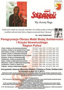 10 listopada br. w Policach odbędą się uroczystości powitania obrazu Matki Boskiej Częstochowskiej Robotników „Solidarności” i Krzyża Nowohuckiego oraz otwarcie Skweru Wielkich Polaków w Parku „Solidarności”.