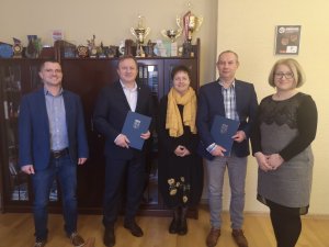 Umowę podpisali przedstawiciele firmy STRABAG Sp. z o.o. oraz Starosta Policki Andrzej Bednarek i Wicestarosta Policki Joanna Napiwodzka przy udziale Członka Zarządu Powiatu w Policach Beaty Chmielewskiej.