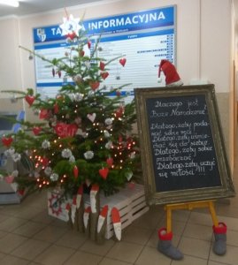 Dzieci chcąc choć na trochę zmienić atmosferę urzędu, nie tylko przystroiły własnoręcznie zrobionymi ozdobami choinki, ale również zaśpiewały wspólnie kolędy.