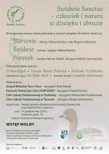 Najbliższy koncert, na który serdecznie zapraszamy już 14 października w kościele parafialnym w Policach-Jasienicy o godz. 16:oo. Wstęp wolny. Więcej informacji na stronie internetowej projektu www.swidwiesanctus.pl [1] oraz na portalu FB link www.facebook.com/Swidwiesanctus-293842644541803/ [2]