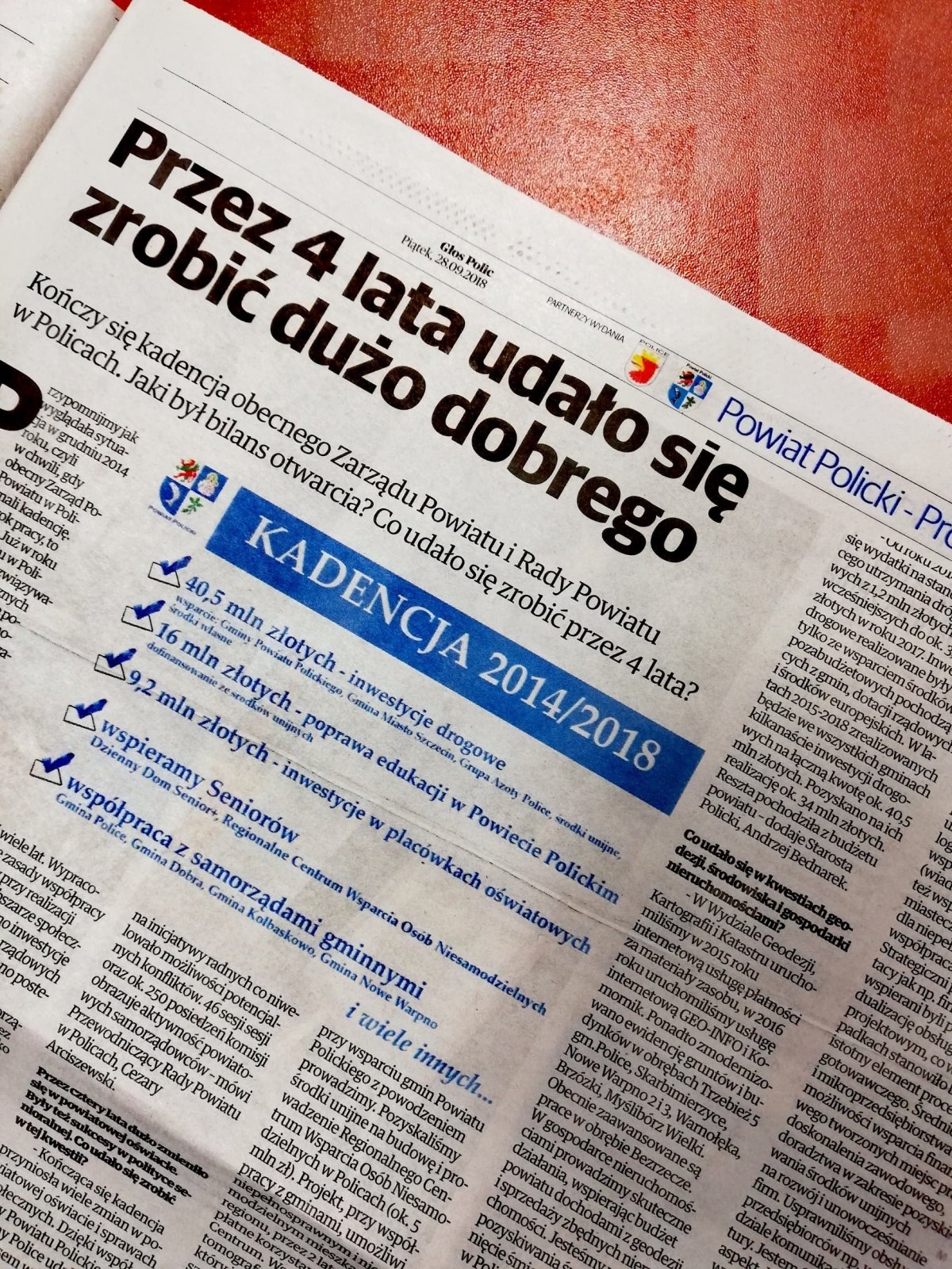 W aktualnym wydaniu artykuł o podsumowaniu mijającej kadencji Zarządu Powiatu i Rady Powiatu w Policach.