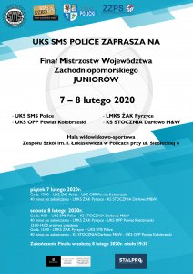 Serdecznie zapraszamy na Finał Mistrzostw Województwa Zachodniopomorskiego Juniorów, który odbędzie się w dniach 7-8 lutego w hali widowiskowo-sportowej Zespołu Szkół im. I. Łukasiewicza w Policach.