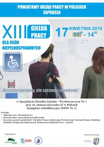 W środę 17 kwietnia br. o godz. 11.00 odbędzie się XIII Giełda Pracy dla Osób Niepełnosprawnych w kompleksie rehabilitacyjnym Specjalnego Ośrodka Szkolno – Wychowawczego Nr 1 w Policach przy ul. Janusza Korczaka 41.