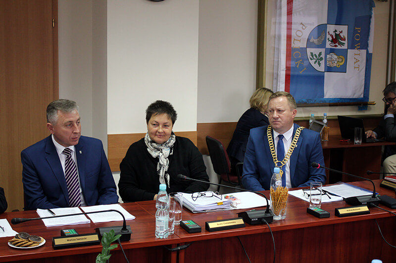 na zdjęciu: Zarząd Powiatu w Policach (Starosta Policki Andrzej Bednarek, Członek Zarządu Powiatu Beata Chmielewska, Wicestarosta Policki Mariusz Sarnecki)